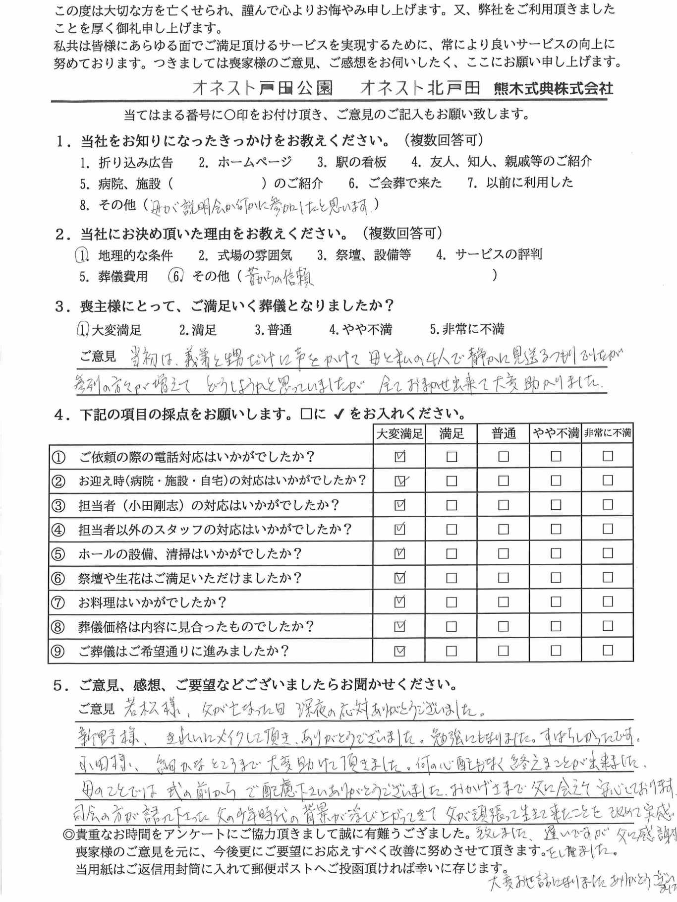 小田様、細かなところまで大変助けて頂きました。何の心配もなく終えることが出来ました。